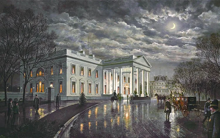 “The White House by Moonlight,” a depiction of the White House circa 1905. (Art: Paul McGehee)