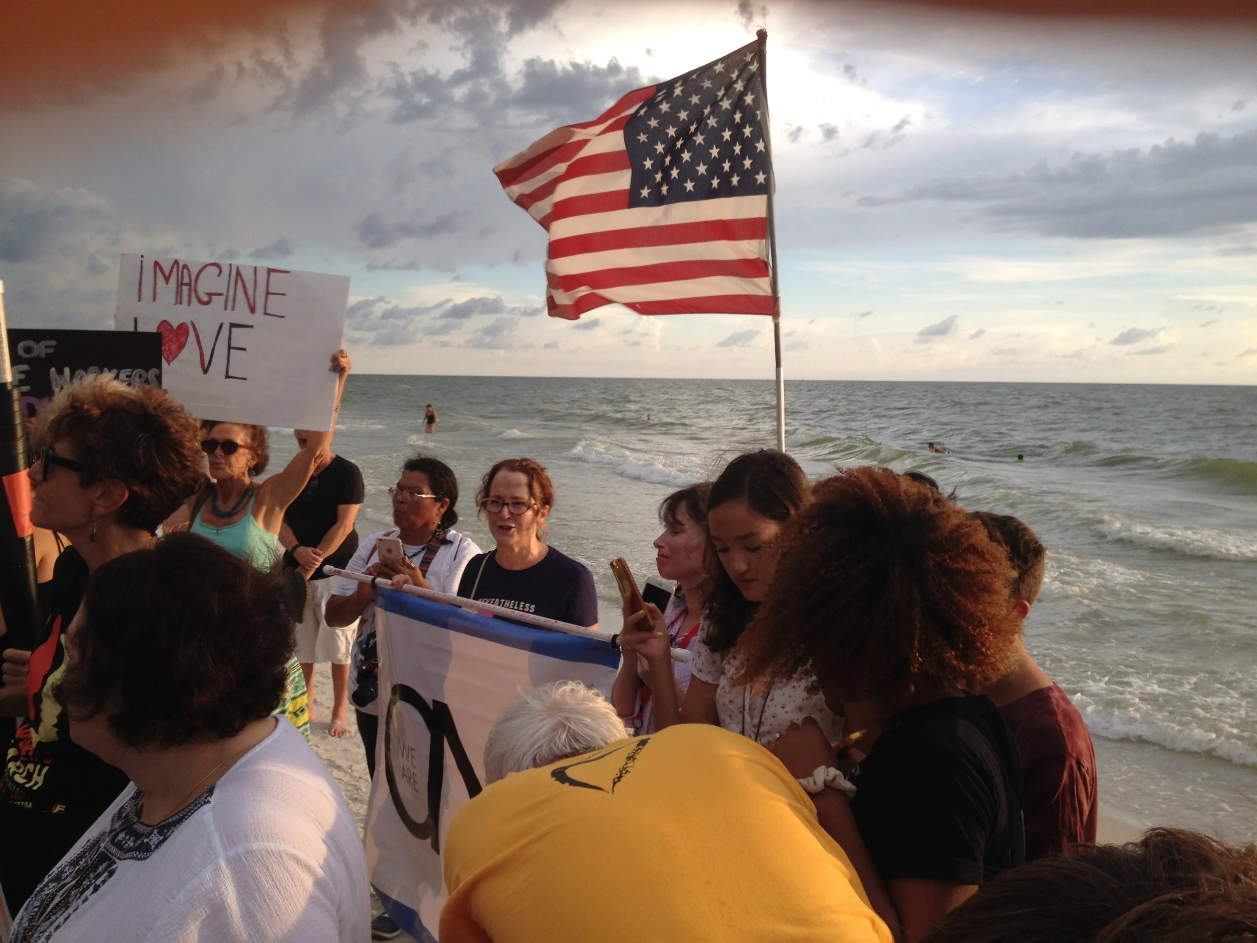 A beach vigil in Naples, Fla., on Aug, 18, 2017 to protest the events in Charlottesville, Va. (Photo: Author)