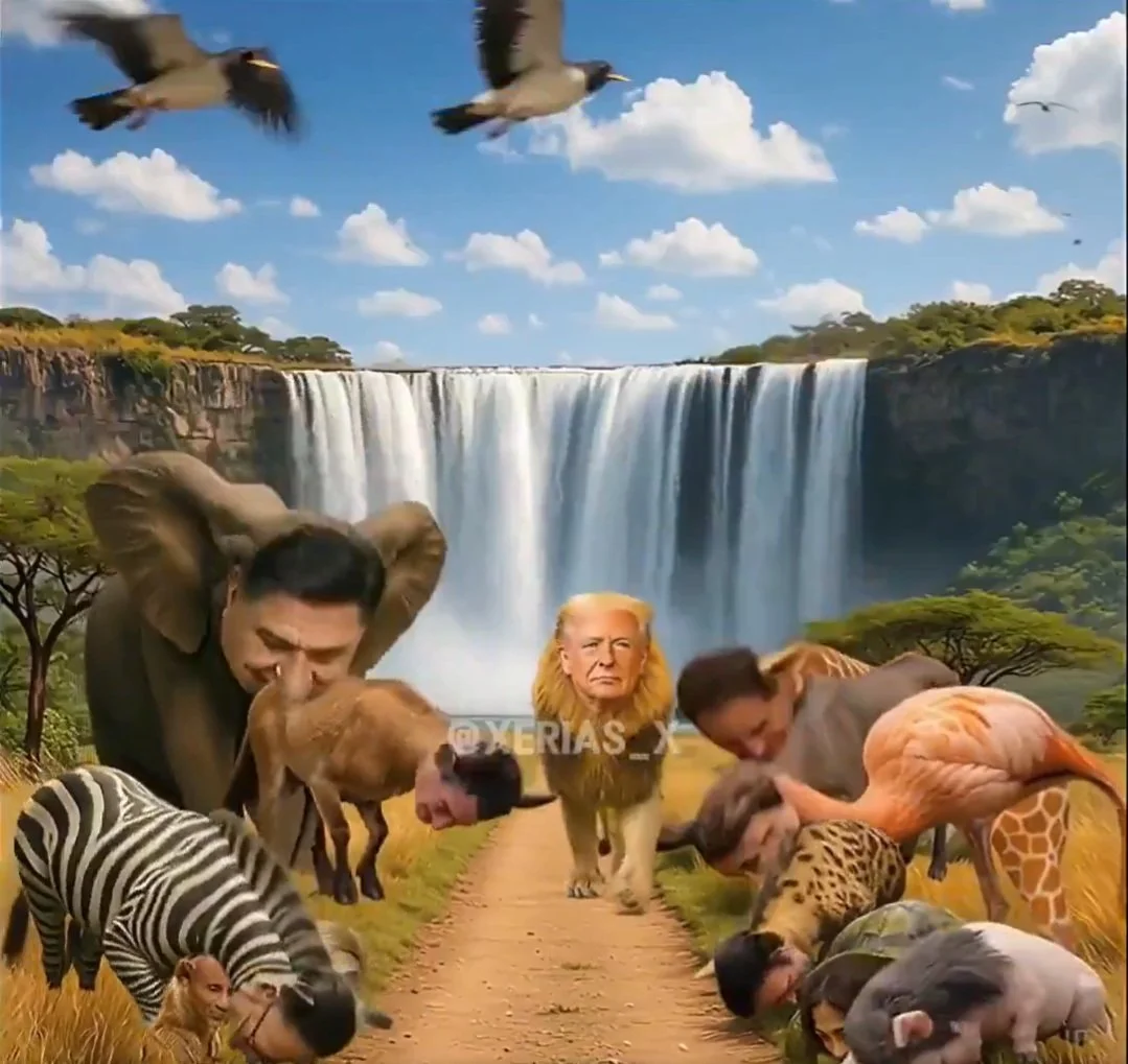 The animal-politicians bow before Lion King Trump in the Xerias video reposted by the White House. (Image: Truth Social via Laura Loomer on X).